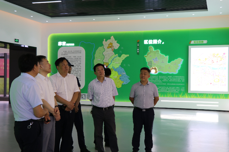 李成偉一行首先參觀了中原農谷展廳。平原示范區農高中心主任王相民對中原農谷的總體思路、功能分區、項目推動情況、運行模式、建設目標和入駐專家團隊情況進行了詳細介紹。