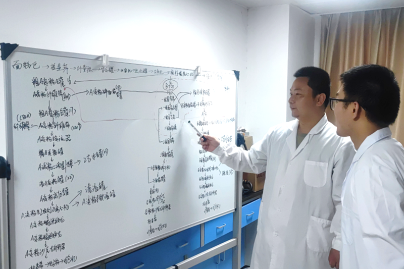糧油食品學院“威特布恩生物”項目指導教師對學生進行實驗思路講解