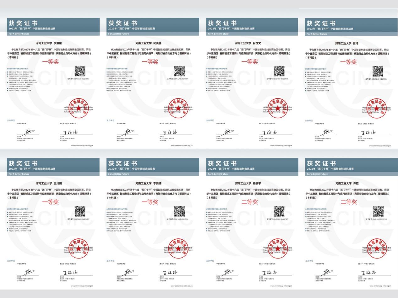 近日,從教育部2022年CIMC“西門子杯”中國智能制造挑戰賽組委會獲悉,我校電氣工程學院、機電工程學院學子榮獲全國初賽一等獎3項、二等獎2項、三等獎1項。電氣工程學院魯可和李智強兩位老師經過培訓考核,分別獲得賽項會務工作組織證書和賽項裁判證書。