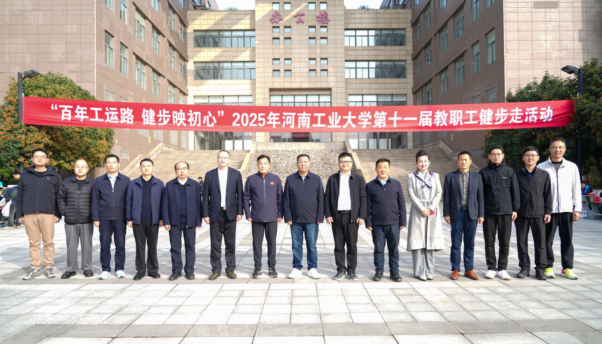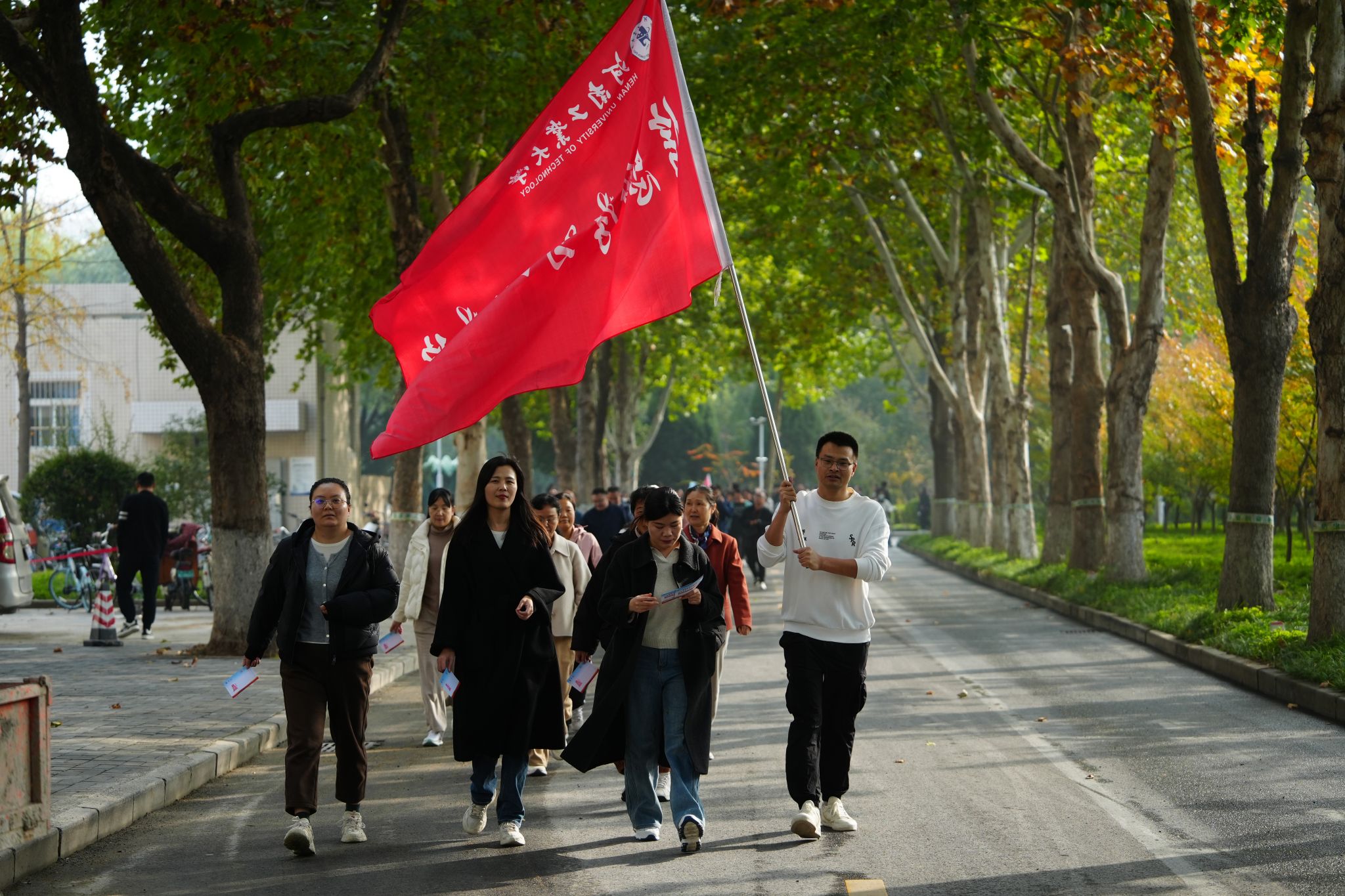 為慶祝中華全國總工會、河南省總工會成立100周年,深入弘揚工運精神,踐行健康中國理念,10月28日下午,校工會舉辦了“百年工運路 健步映初心”第十一屆教職工環校健步走活動。本次活動得到了校領導的高度重視與大力支持,吸引了全校近2500名教職工的積極響應與熱情參與,共同開啟了一場充滿活力和紅色意義的健步之旅。
