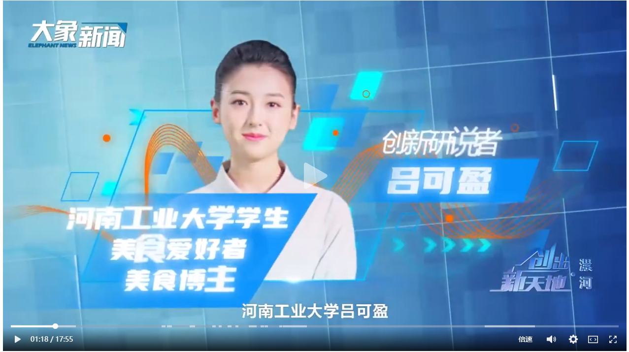 我校參與拍攝的河南廣播電視臺大型特別節目《創出新天地?漯河篇》9月28日晚在河南衛視及大象新聞同步播出,微博話題瀏覽量破億。我校新聞與傳播學院學生呂可盈作為“創新研說者”全程主持節目,糧油食品學院教授謝巖黎應邀作為“創新觀察者”進行系統點評、評價。