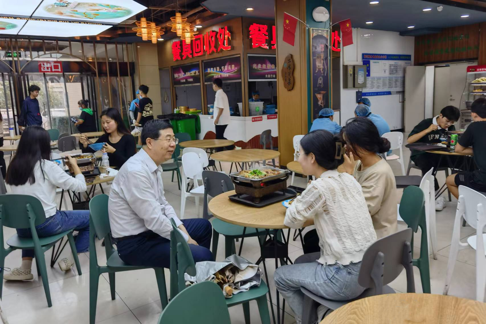 臨近中午,劉志軍來到學生第一餐廳,與就餐學生面對面交流在校學習生活情況,認真聽取同學們對學校疫情防控、餐飲服務保障等工作的意見和建議,并對同學們全力配合做好學校疫情防控、全力維護校園安全穩定給予充分的肯定。他指出,學校在嚴格落實上級有關疫情防控要求、織密織牢疫情防控網的同時,想方設法為同學們營造良好的學習、生活環境,今后還將一如既傾聽同學們的心聲,積極創造條件助力學生成長成才。希望同學們樹立遠大理想,勇擔時代責任,充分利用在校的大好時光和學習資源,立大志、明大德、成大才、擔大任,努力成為堪當民族復興重任的棟梁之材。