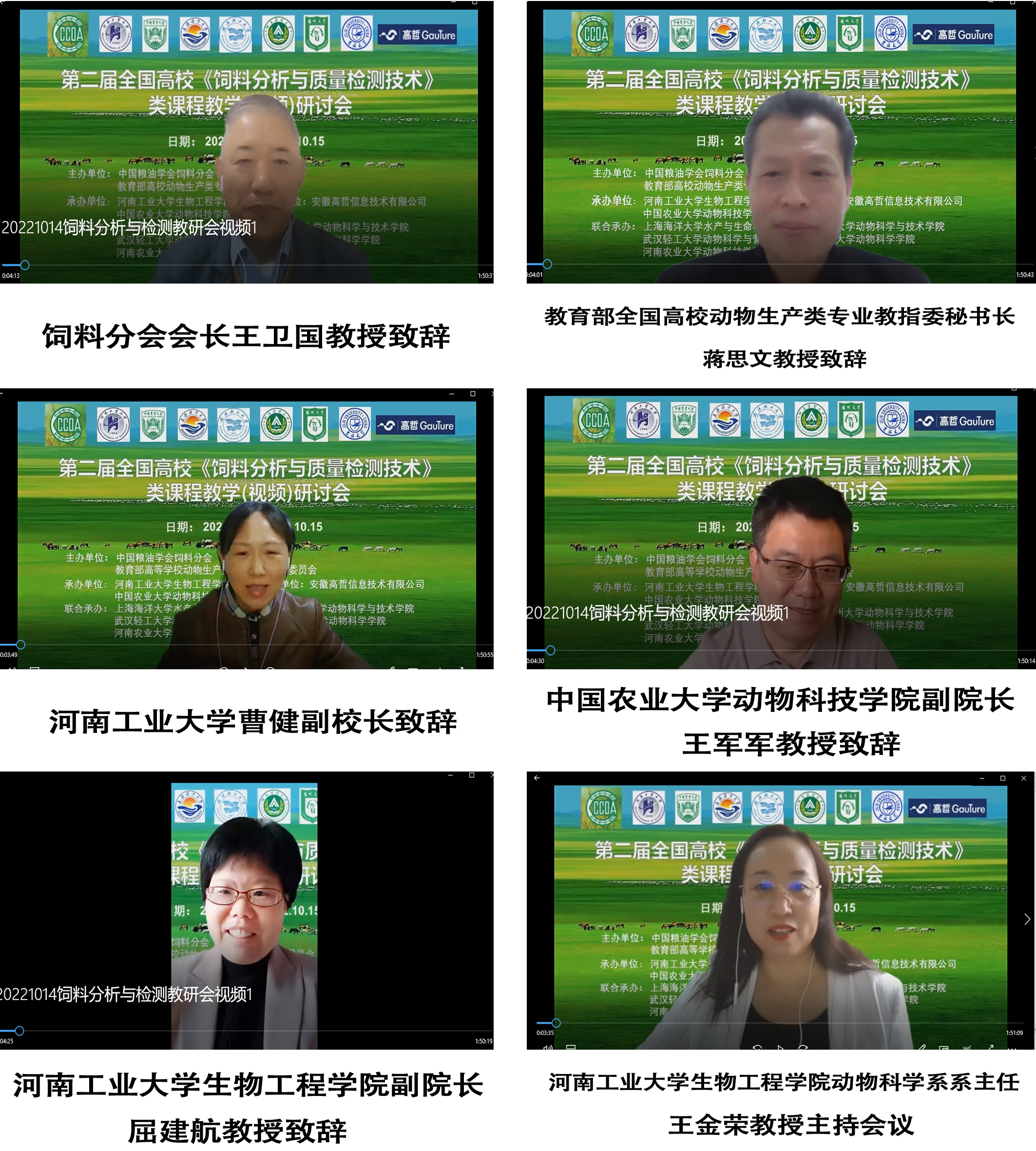 為深入貫徹落實中共中央和國務院《深化新時代教育評價改革總體方案》中提出的探索建立應用型本科評價標準和教育部“關于一流本科課程建設的實施意見”,推進國內高校動物科學專業、水產養殖專業、飼料工程專業以及相關研究生專業的《飼料分析與質量檢測技術》類課程教學質量與水平的提高,滿足新時代專業人才培養要求,中國糧油學會飼料分會和教育部高校動物生產類專業教學指導委員會于10月14日至15日,在騰訊會議平臺聯合主辦了第二屆全國《飼料分析與質量檢測技術》類課程教學研討會。本次會議由河南工業大學生物工程學院和中國農業大學動物科技學院承辦,上海海洋大學水產與生命科學學院、武漢輕工大學動物科學與營養工程學院、河南農業大學動物科技學院、揚州大學動物科學與技術學院和吉林大學動物科學學院聯合承辦。會議由安徽高哲信息技術有限公司提供支持。來自全國38所高校和16家企業的210位代表參加了此次會議。會議開幕式和閉幕式分別由中國糧油學會飼料分會常務理事、副秘書長、河南工業大學王金榮教授和中國糧油學會飼料分會副會長、上海海洋大學冷向軍教授主持。