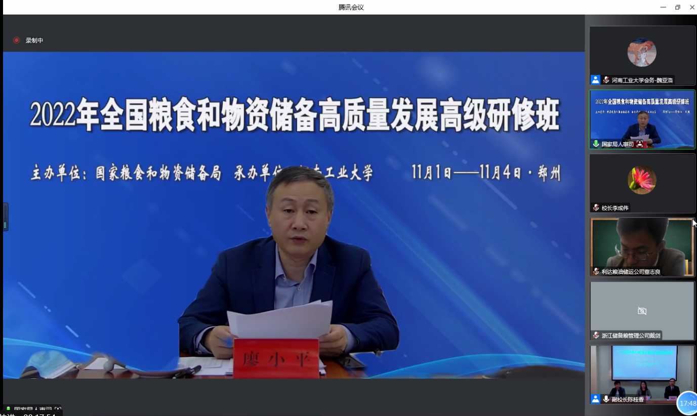 李成偉代表河南工業(yè)大學(xué)致歡迎辭。他指出,由國家糧食和物資儲備局主辦的“2022年全國糧食和物資儲備高質(zhì)量發(fā)展高級研修班”是整個行業(yè)發(fā)展中的一件大事,是大家期待已久的知識研修盛會;河南工業(yè)大學(xué)能夠連續(xù)多年承辦多期由國家糧食和物資儲備局主辦的國家級專題研修班,各位專家學(xué)者、領(lǐng)導(dǎo)學(xué)員能夠通過線上或線下方式如期參加研討學(xué)習(xí),是對河南工業(yè)大學(xué)在糧食和物資儲備行業(yè)辦學(xué)特色、優(yōu)勢和社會服務(wù)能力的充分肯定;當(dāng)今世界正處于百年未有之大變局,當(dāng)代中國正處于向第二個百年奮斗目標(biāo)進軍的關(guān)鍵時刻,全方位夯實糧食安全根基,確保中國人的飯碗牢牢端在自己手中,意義重大,責(zé)任艱巨;舉辦本次研修班,就是以實際行動貫徹和落實黨的二十大精神,展示糧食和物資儲備行業(yè)各級人才在全面推動行業(yè)高質(zhì)量發(fā)展上的使命、擔(dān)當(dāng)和作為;河南工業(yè)大學(xué)將以“12357新時代筑峰工程”為引領(lǐng),充分發(fā)揮學(xué)校作為“全國糧食行業(yè)(鄭州)教育培訓(xùn)基地”和“國家專業(yè)技術(shù)人員繼續(xù)教育基地”的平臺聚合作用,努力把學(xué)校早日建成特色鮮明的“雙一流”高校,為整個大儲備行業(yè)的創(chuàng)新發(fā)展提供更高質(zhì)量、更高水平的全面服務(wù);熱烈歡迎大家常到河南工業(yè)大學(xué)交流學(xué)習(xí),也相信本次研修班一定能取得圓滿成功。