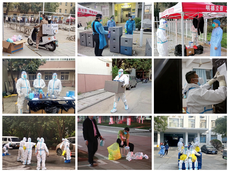 20多天的工作中,學校黨員志愿服務突擊隊與嵩山路校區師生克服人員緊張、環境復雜、條件有限等諸多困難,共同筑起了“抗擊疫情”的堅強防線:這里有每天研判分析到深夜的指揮中心黨員干部;有徹夜統計數據、開展流調的老師;有不辭勞累深入宿舍做核酸檢測的志愿者,有隨時等候指令提供抗疫物資的物資保障組;有負責健康監測、分發三餐、物資配發、服務學生的一線樓長;有24小時待命負責隔離轉運的黨員突擊隊員;有通宵達旦做好基礎保障的餐飲、保衛、保潔、消殺人員;有傾聽學生聲音、協助購買物資、開展心理疏導的輔導員。師生堅守、齊心協力,實現了嵩山路校區疫情防控形勢的總體好轉。