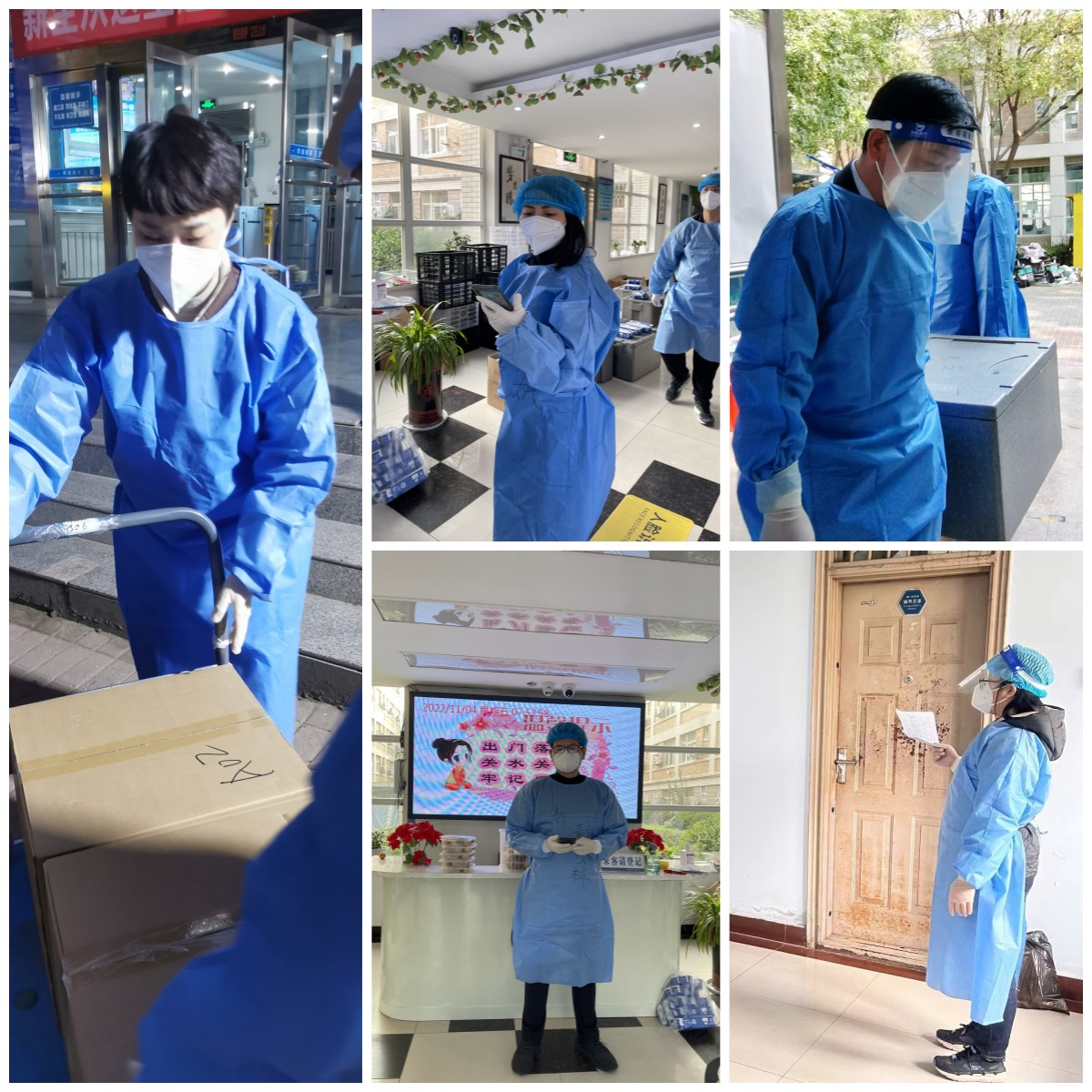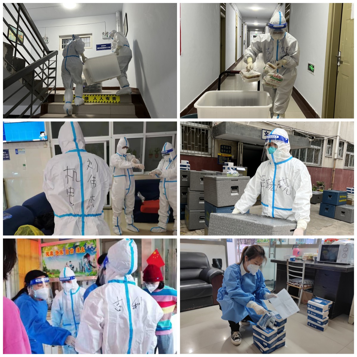 他們是盡職盡責的“大白”和“藍精靈”。每天早上六點的鬧鐘,叫醒深秋寒風瑟瑟的清晨。輔導員們迅速收拾整理,嚴格按流程穿上防護服,化身“大白”和“藍精靈”便進入了一天的工作狀態。他們早早來到所負責的樓宇準備配送早餐,將各個宿舍的飯菜逐份送給學生。每餐有序分發到學生的手中后,他們才有時間吃到早已沒有一絲熱氣的工作餐。隨后他們又開始分發抗原的工作,提醒學生嚴格按照流程做抗原并逐個統計結果。接著來不及休息,就要開始處理學生的各種問題,并督促學生及時進行核酸采樣。