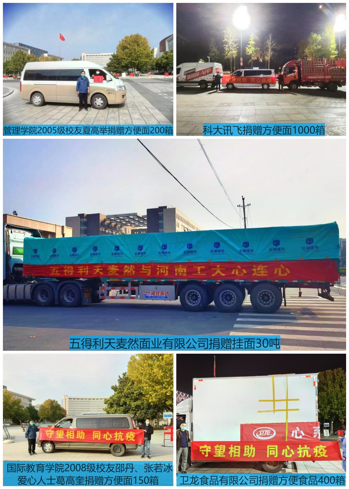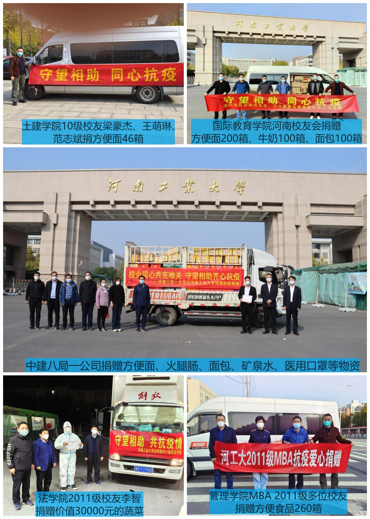 與此同時,廣大校友、愛心人士和在校學生還通過留言表達了對學校的關心、關注和支持,許多留言感人至深,讓人淚目。這里面有退休老校友“疫情不可怕,處處有真情,捐一個月退休金聊表心意,辛苦啦!”,也有17級海外校友“雖身在南非,但心系母校,為母校助力!”;有本科生“剛下課的老師又穿上厚厚的防護服,既要帶領我們學習,又要爭分奪秒照顧我們的吃飯和生活,我們能夠安心、安全的待在宿舍,真的想說一句辛苦了!工大加油!”,也有研究生“看到負責老師為了讓同學們吃上口熱飯焦頭爛額,也看到每天為我們做核酸的大白,累得自己捶腰”;有學生家長“作為學生家長,一直心系河工大,有老師們的悉心照顧,我們安心、放心,也有信心”,也有年輕教師“從三尺講臺轉戰抗疫一線,有黨員干部沖鋒在前,有老師學生團結堅守,我們定能踐行初心使命,彰顯師者擔當”,更有在職老教師“30年的時間,河南工業大學這個名字早已融入我的血液,融入無數為她奮斗的師生員工的血液,我們在他的懷抱里成長,這里的每一絲空氣都與我們息息相關。特殊時期,讓我們手拉手,心相依,匯聚無窮的力量;特殊時期,讓我們守望相助,眾志成城,共克時艱;特殊時期,讓我們堅定信心,勇于擔當,迎接黎明”……這一句句感人肺腑的言語更加堅定了全校師生戰勝疫情的信心和決心。