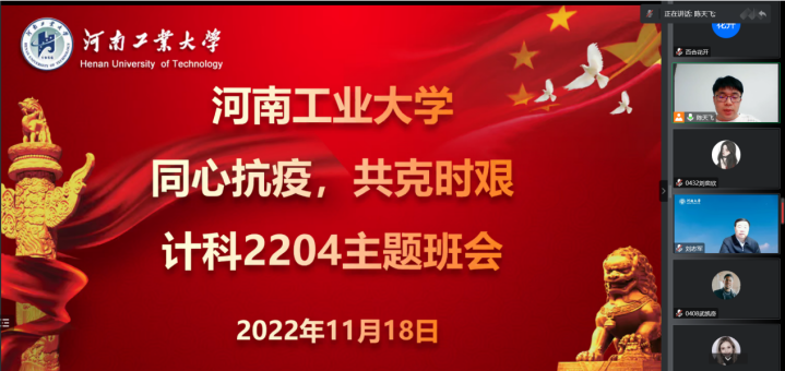 11月18日晚,校黨委書記劉志軍和計算機科學與技術2204的同學們,用線上方式召開了“同心抗疫,共克時艱,讓青春煥發別樣光彩”主題班會,為同學們戰勝疫情困難、平安健康成長成才加油鼓勁。