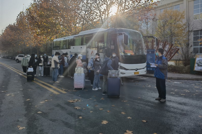 面對日益復雜的疫情形勢,為了確保請假返鄉的學生安全有序踏上歸程,學校開通專車“送站”服務,全方位保證學生身心安全。