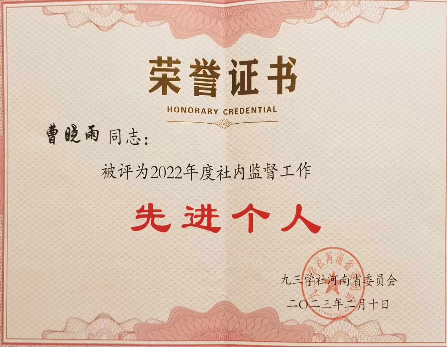 在當天的大會上,我校九三學社委員會主委栗正新教授被評為“九三學社中央委員會社會服務先進個人”,我校九三學社獲得了河南省“2022年度社會服務先進單位”榮譽稱號,一支社獲得了“九三學社河南省委員會社內監督先進集體”稱號。一支社主委曹曉雨教授被評為“2022年度九三學社河南省委員會社內監督工作先進個人”。我校九三學社主委栗正新的《“一千億兩中心”為目標,打造河南省現代超硬材料產業集群》和《政府主導、產學研合作打造縣域產業集聚區共性技術創新平臺》兩個參政議政提案被河南省政協和全國政協采納。大會還特別表揚了我校九三學社在校企合作中開展的科技創新工作。