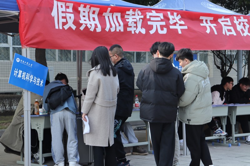 “最是一年春好時,萬物復(fù)蘇氣象新。”2月18日至2月19日,陽光明媚,春和景明,蓮花街校區(qū)南大門內(nèi)“歡迎同學(xué)們返?!钡拇蠓鶉娎L和彩旗格外醒目。各學(xué)院也在辦公樓前布置了“春暖花開 歡迎歸來”“新學(xué)期拍了拍你 歡迎回家”等溫馨條幅,參與返校志愿服務(wù)的“紅馬甲”們穿梭在校園里幫助同學(xué)們接送行李。返校同學(xué)經(jīng)過大門口的查驗體溫、門禁識別后,有序進入校園。久別重逢的同學(xué)們笑意盎然,校園里生機勃發(fā),處處展現(xiàn)著新學(xué)期的新氣象。