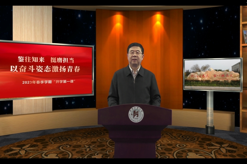 為深入學習貫徹習近平新時代中國特色社會主義思想和黨的二十大精神,教育引導廣大師生以高昂的斗志和青春的姿態開啟新的學期,踏上新的征程。校黨委書記劉志軍以視頻方式為全校師生講授題為《鑒往知來 挺膺擔當 以奮斗姿態激揚青春》的春季學期開學第一課。
