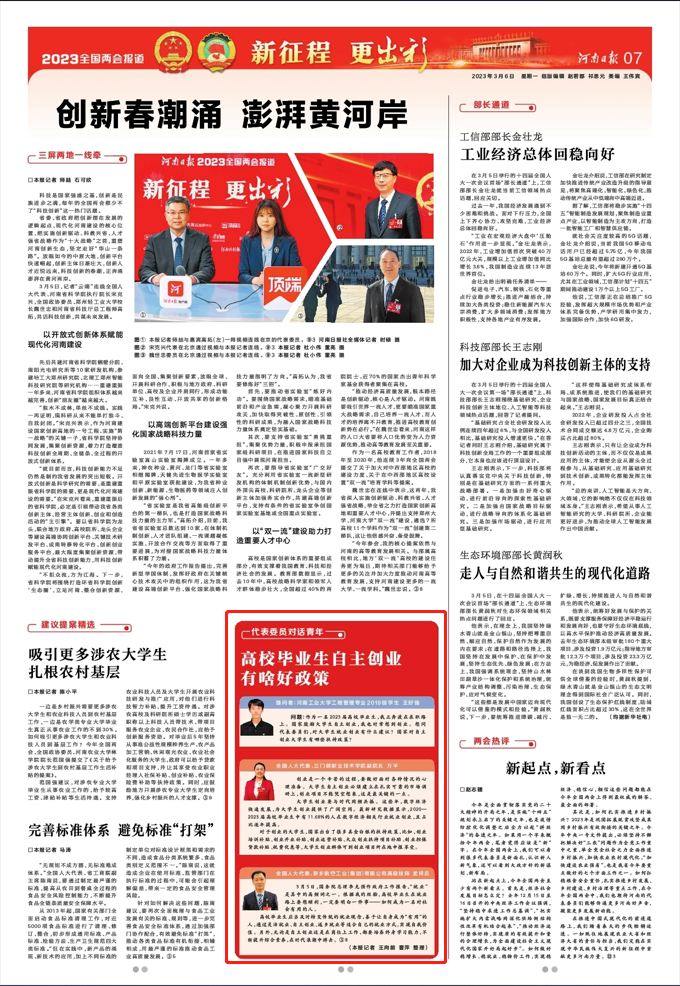 2.《河南日報》3月6日第07版:《高校畢業生自主創業有啥好政策(代表委員對話青年)》