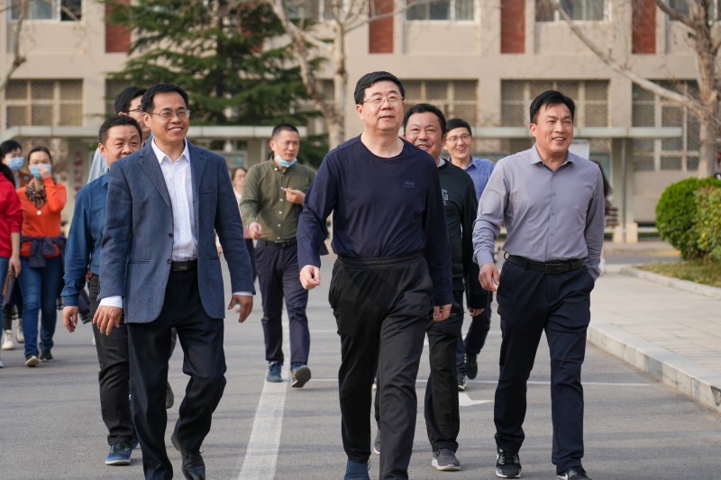學校領導與教職工共同參加健步走活動