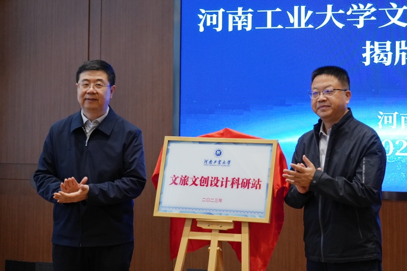 劉志軍、王建平共同為河南工業大學文旅文創設計科研站揭牌
