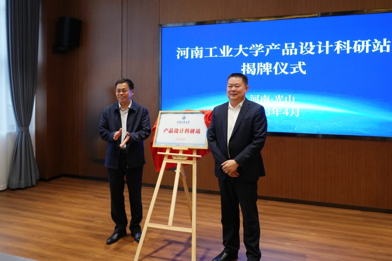 周相寅、三元光電董事長張斌共同為河南工業大學產品設計科研站揭牌