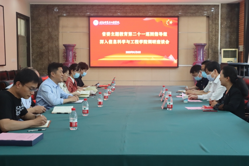 主題教育巡回指導組先后到經濟貿易學院和信息科學與工程學院進行專題調研指導,兩個學院的領導班子成員、黨支部書記代表分別參加了調研座談會,黨委組織部副部長張芳全程陪同調研。