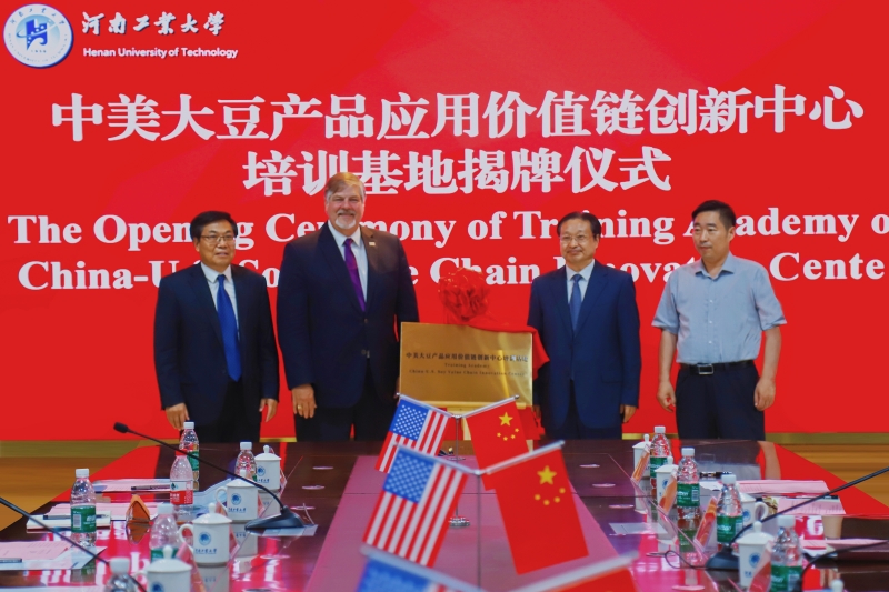 隨后,“創新中心”四方簽約成員單位代表王自文、薄思禪、陳復生、賈發生共同為“中美大豆產品應用價值鏈創新中心培訓基地”揭牌。“培訓基地”作為“中美大豆產品應用價值鏈創新中心”的重要組成部分,將通過人才交流、專家派遣、培訓、技術合作、實地示范等合作模式,為推動產業技術升級、區域經濟發展、學校“雙一流”創建等方面做出更大的貢獻。
