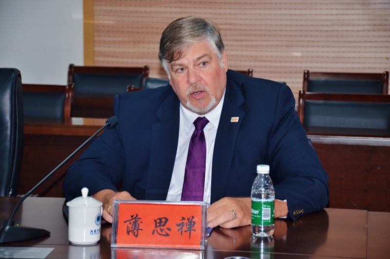 陳復生從辦學歷史、辦學特色、科學研究、行業培訓等方面介紹了學校的基本情況。他表示,學校將努力把“培訓基地”打造成集科研、培訓、創新和產業轉化為一體的學習交流平臺,以高水平、高質量的“培訓基地”助力產業高質量發展,推動中美經貿合作不斷走深走實,共同創造合作共贏的美好未來。