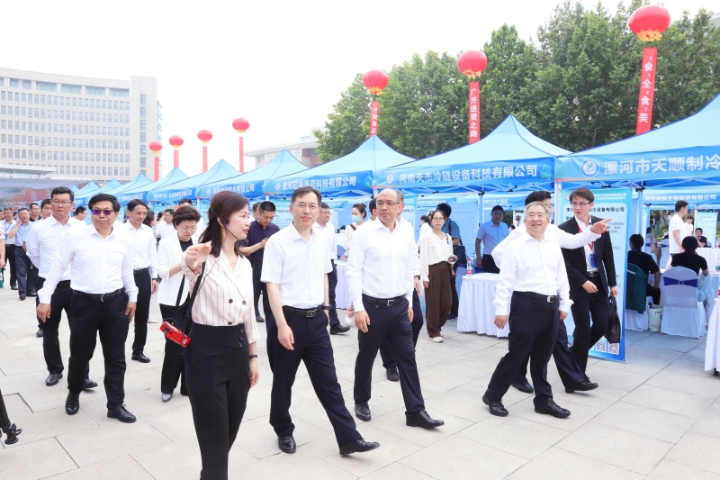 啟動儀式結束后,校領導陪同省、市領導到各用人單位招聘展位進行巡視。李成偉表示,漯河是中國食品名城,匯聚了眾多國際國內知名食品企業,產業實力雄厚。中原食品實驗室在漯河落成,更為漯河打造未來食品產業注入了強大的科技力量。食品工程學科同樣是河南工業大學的優勢特色學科,學校在食品工程領域科研成果豐碩,每年也向糧油食品行業輸送大量人才。學校作為第一牽頭單位參與中原食品實驗室建設,未來將借助這一平臺更好地服務漯河食品產業科技創新。漯河市政府給予食品相關領域專業人才的就業政策支持,也為保障學校畢業生充分實現高質量就業提供了有力支持。校地雙方合作基礎扎實,合作前景廣闊,雙方攜手將對助推河南打造萬億級食品產業發揮積極作用。