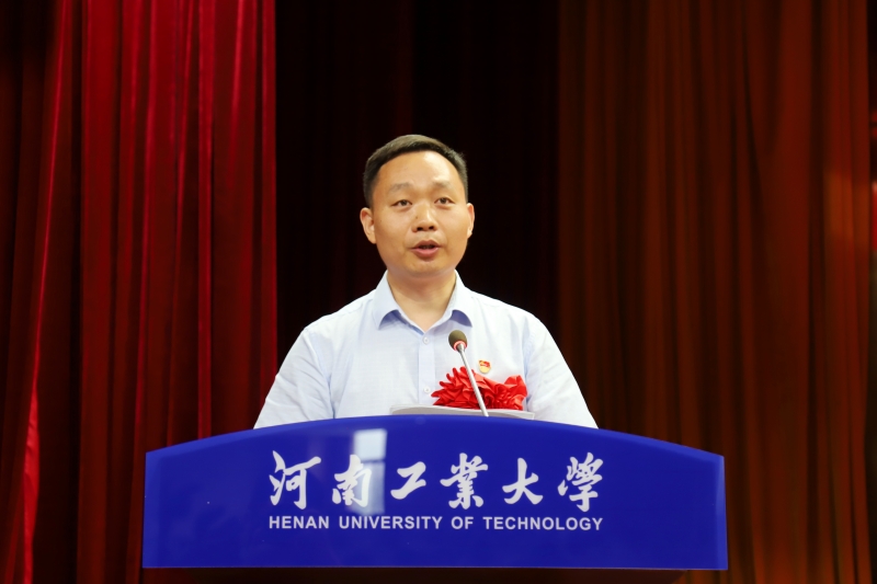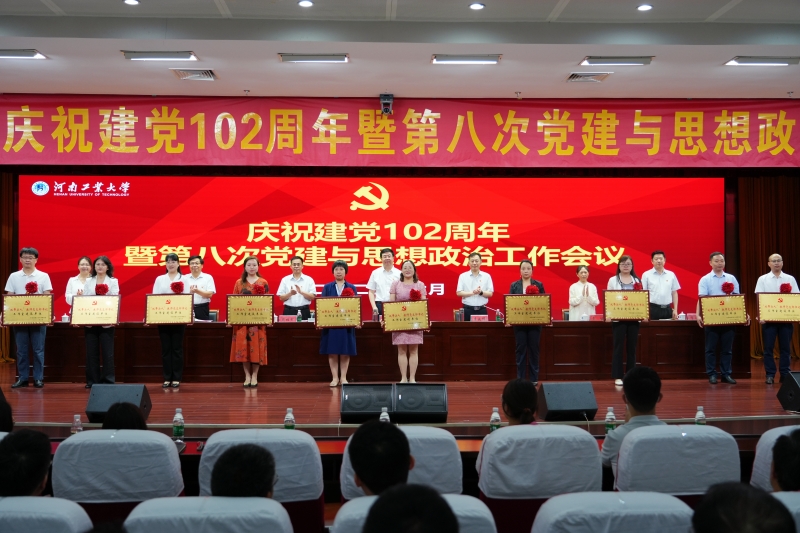 在莊嚴的國歌聲中,會議拉開帷幕。會議首先對2021至2023年學(xué)校黨建與思想政治工作中表現(xiàn)突出的單位及個人進行了表彰。校黨委副書記周相寅宣讀了《關(guān)于表彰2021-2023年度優(yōu)秀共產(chǎn)黨員、優(yōu)秀黨務(wù)工作者和先進基層黨組織的決定》《關(guān)于公布“雙帶頭人”教師黨支部書記工作室建設(shè)單位的通知》《關(guān)于表彰“大學(xué)生黨員標(biāo)兵”的決定》《關(guān)于公布2023年度全省教育系統(tǒng)“兩創(chuàng)兩爭”先進集體和先進個人評選結(jié)果的通知》《關(guān)于公布河南工業(yè)大學(xué)理論學(xué)習(xí)示范點創(chuàng)建單位的決定》《關(guān)于表彰河南工業(yè)大學(xué)思想政治工作優(yōu)秀品牌的決定》《關(guān)于表彰河南工業(yè)大學(xué)思想政治工作先進個人的決定》等表彰文件。