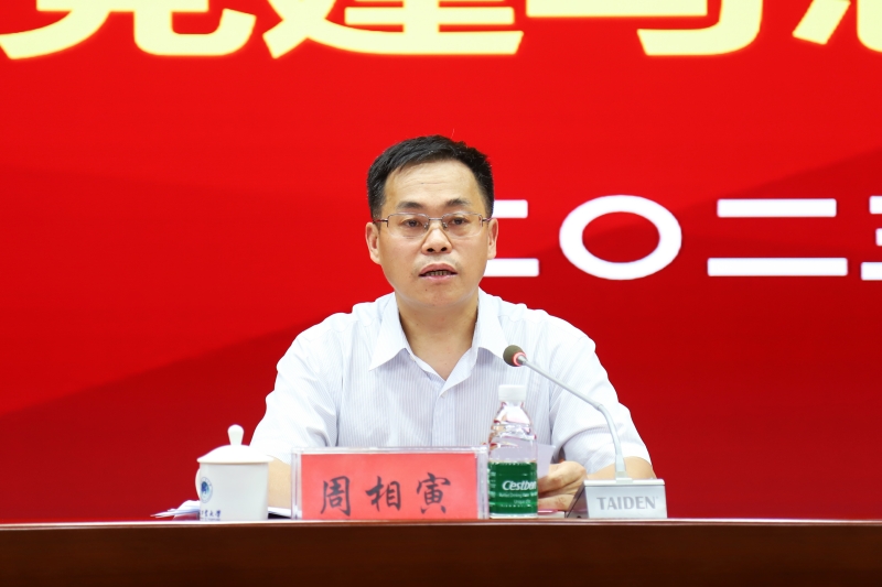 圍繞學(xué)校 “雙一流”創(chuàng)建過程中持續(xù)加強和改進學(xué)校黨建與思想政治工作,劉志軍給出四點意見:一是要堅持黨建引領(lǐng)聚合力,思想鑄魂育新人。要堅持從“深化理論武裝,加強黨的領(lǐng)導(dǎo),夯實基層黨建,強化隊伍建設(shè),堅持立德樹人,加強政治監(jiān)督,注重頂層設(shè)計”七個方面持續(xù)完善學(xué)校黨建與思想政治工作格局,深刻認識并著力解決學(xué)校黨建與思想政治工作存在的問題與不足,全力推進學(xué)校黨建與思想政治工作邁上新臺階。二是要準確把握新形勢,站位全局抓黨建。要充分認識思想政治工作的極端重要性,自覺做到胸懷“兩個大局”,學(xué)深悟透黨的二十大精神;聚焦“國之大者”,牢牢把握教育強國使命任務(wù);錨定一流創(chuàng)建,準確把握學(xué)校事業(yè)發(fā)展目標(biāo)方向。三是要履職盡責(zé)強作為,勇挑重擔(dān)敢擔(dān)當(dāng)。牢牢把握正確政治方向,堅持和加強黨的全面領(lǐng)導(dǎo);突出大抓基層的鮮明導(dǎo)向,夯實基層黨建工作基礎(chǔ);緊扣立德樹人根本任務(wù),引領(lǐng)服務(wù)學(xué)生成長成才;強化思政隊伍建設(shè),完善思想政治工作體制機制;深化師德師風(fēng)建設(shè),著力構(gòu)建教師隊伍建設(shè)新格局;推進全面從嚴治黨,努力營造風(fēng)清氣正的育人環(huán)境。四是要真抓實干強作風(fēng),砥礪前行重實效。各學(xué)院、部門要抓好這次會議精神的傳達學(xué)習(xí)與貫徹落實,切實筑牢學(xué)校黨建與思政工作生命線,在保障學(xué)校“十四五”規(guī)劃順利實施和落實“雙一流”創(chuàng)建目標(biāo)任務(wù)的過程中,做到堅持黨建統(tǒng)領(lǐng),切實履行主體責(zé)任;堅持成果導(dǎo)向,有效提升工作質(zhì)量;堅持從嚴執(zhí)紀,全面護航事業(yè)發(fā)展。