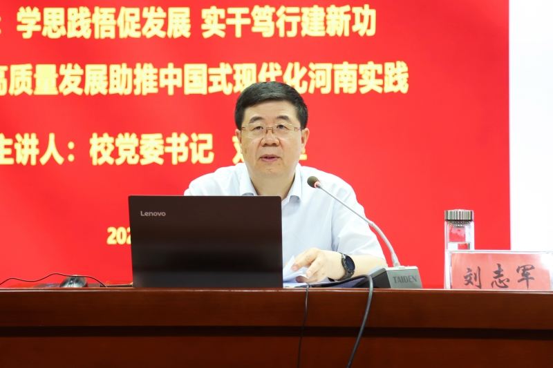 劉志軍指出,中國式現代化是我們黨領導人民長期探索和實踐的重大成果,有著深刻的歷史、實踐和理論邏輯。廣大黨員、干部要全面理解中國式現代化道路的探索歷程,把握中國式現代化的歷史由來,深刻理解把握中國式現代化的理論體系,充分認清中國式現代化的理論意義與實踐價值;要深入落實河南省第十一次黨代會精神,錨定“兩個確保”的奮斗目標,服務河南省“十大戰略”,主動融入中國式現代化建設河南實踐;要深刻認識建設教育強國對實現中國式現代化的重要意義,充分發揮高校教育強國建設龍頭作用,更加主動服務大局、積極超前布局、有效應對變局、奮力開拓新局。