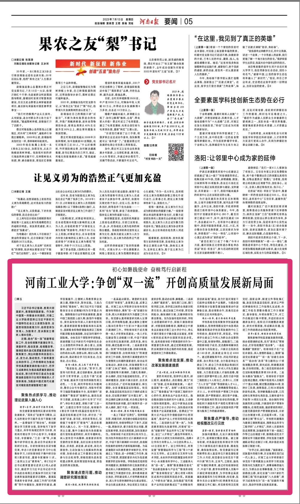 《河南日?qǐng)?bào)》(2023年07月13日第5版)要聞欄目