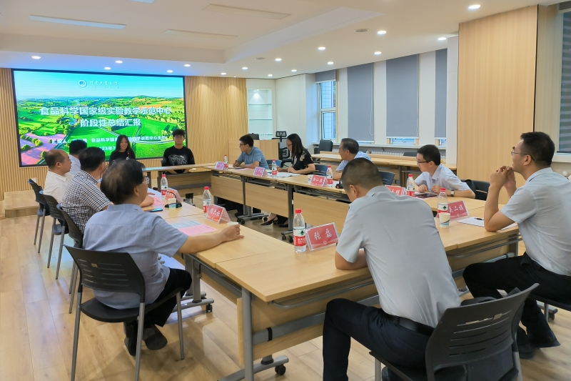 食品科學國家級實驗教學示范中心主任、科技處處長趙仁勇教授,從示范中心的管理與運行機制、教學與人才培養、教學改革與研究、教學條件保障、教學團隊建設、示范引領成效、特色亮點與創新等做了詳細匯報。