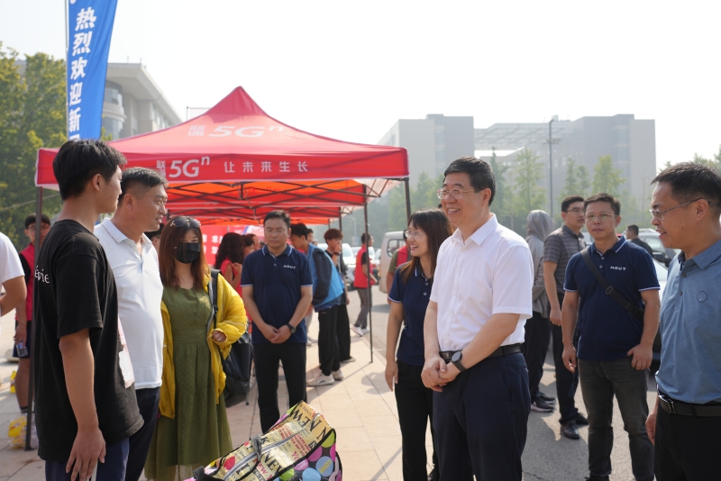 新生報到首日,校黨委書記劉志軍,校長李成偉,校黨委副書記周相寅、副校長李煥鋒、副校長陳桂香、校紀委書記張玉安帶領相關職能部門負責人分別深入蓮花街校區和嵩山路校區迎新現場,慰問新生、工作人員及志愿者們。