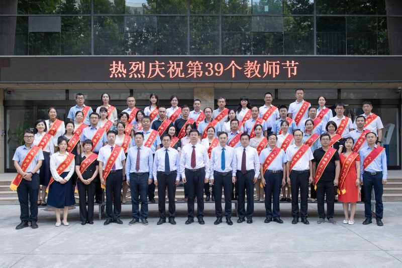 會(huì)議結(jié)束后,全體校領(lǐng)導(dǎo)和獲獎(jiǎng)教師代表到辦公樓一樓北門合影留念。