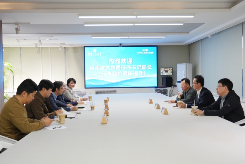 10月13日下午,河南省文物局黨組書記、局長任偉,總工程師劉燦利,博物館處處長康國義一行三人到我校進行專題調研。校黨委書記劉志軍在調研前同任偉一行進行座談交流,設計藝術學院院長、河南省工業設計研究院院長王慶斌、中國糧食博物館館長李國倉、設計藝術學院宋黎老師等參加調研座談。座談交流會上,劉志軍對任偉一行來校調研表示歡迎,從學校的辦學歷史、理念、定位、特色等方面介紹了學校發展情況。