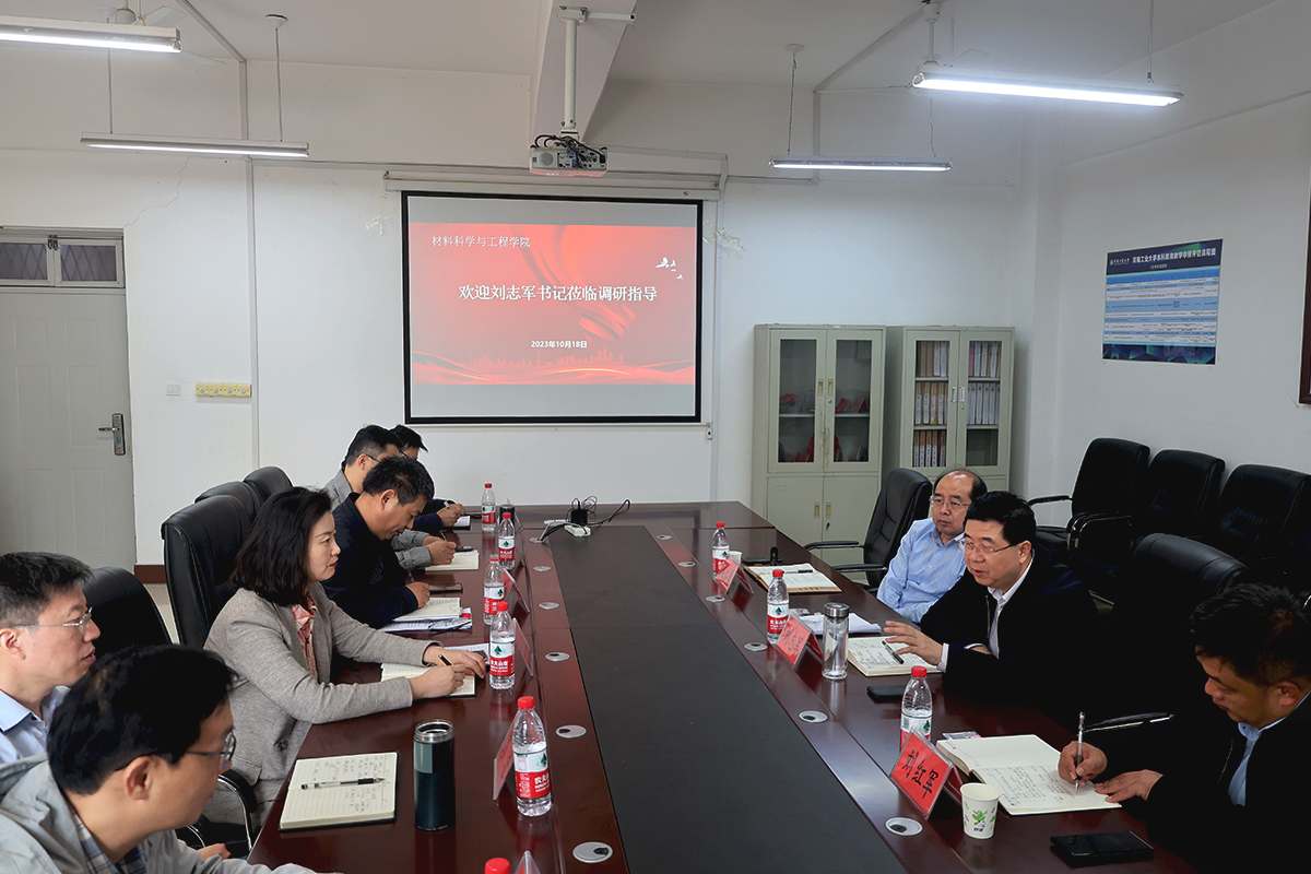 10月18日,校黨委書記劉志軍到材料科學與工程學院就材料學科建設與我省超硬材料產業對接情況進行專題調研指導,黨委辦公室、校長辦公室主任劉紅軍和科技處處長趙仁勇陪同調研,學院領導班子成員和材料科學與工程系系主任參加調研座談會。座談會由院黨委書記車愔主持。