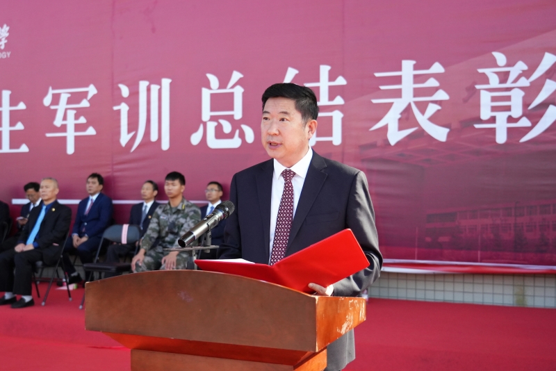 校黨委副書記周相寅作軍訓總結。他對軍訓期間努力訓練、表現優異的同學們表示贊賞,對承擔帶訓任務的全體教官表示敬意,對參與軍訓工作的所有輔導員、班主任、后勤保障人員表示感謝。周書記勉勵同學們在之后的大學生活中:一是樹立遠大理想,厚植愛國情懷。作為新時代的大學生,同學們要勇敢肩負起時代賦予的重任,志存高遠,腳踏實地,把自己的理想同祖國的前途、把自己的人生同民族的命運緊密聯系在一起,努力在實現中華民族偉大復興的中國夢的生動實踐中放飛青春夢想。二是磨礪奮斗之志,勇擔強國使命。同學們要始終秉承“山高人為峰,路遠腳更長”的強大信念,在奮斗中摸爬滾打,勇擔強國建設使命,向著實現中華民族偉大復興的宏偉目標奮勇前進。三是練就過硬本領,實踐報國之行。希望同學們把在軍訓中激發出來的團結、拼搏、進取精神融入今后的學習生活中,切實增強學習緊迫感,在學習中增長知識、錘煉品格,在工作中增長才干、練就本領,以真才實學服務人民,以創新創造貢獻國家,努力把青春華章寫在祖國大地上。