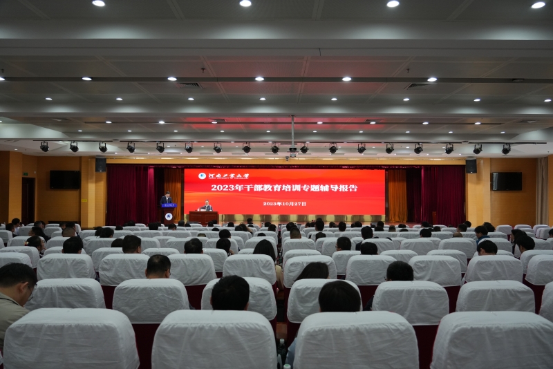 為進一步貫徹落實教育部和省委省政府推進教育數字化轉型的部署要求,深入實施我校數字化轉型戰略,突出數字化在高等教育管理中的賦能作用,助力學校“雙一流”創建,10月27日下午,學校舉辦干部教育培訓專題輔導報告,特邀武漢理工大學校長楊宗凱教授作《推進教育數字化加快高等教育創新》專題輔導報告。全校中層領導人員、信息化管理中心、信息科學與工程學院和人工智能與大數據學院的各系(教研室、實驗中心)負責人參加報告會,報告會由校黨委書記劉志軍主持。