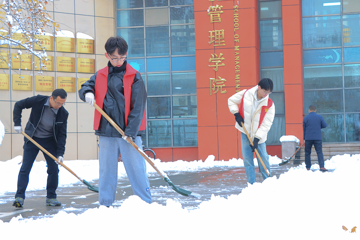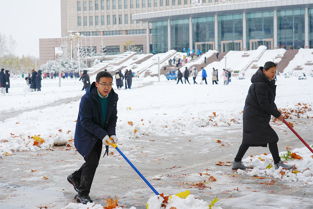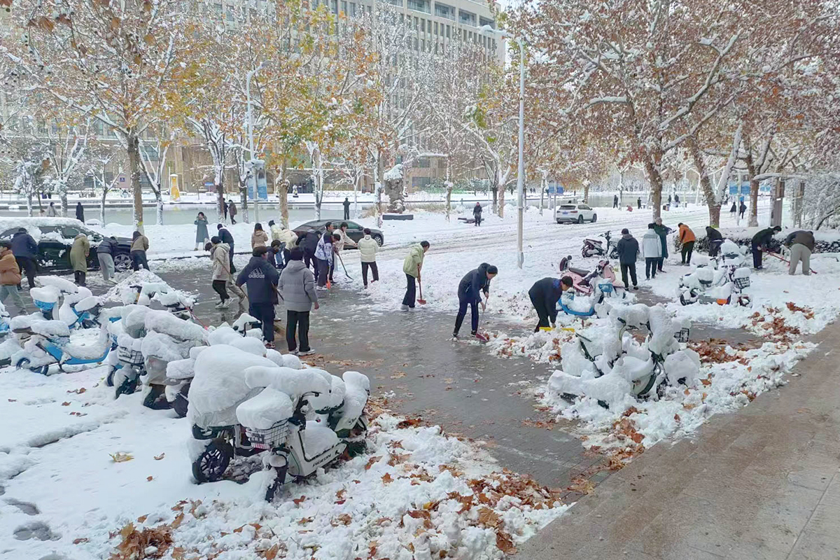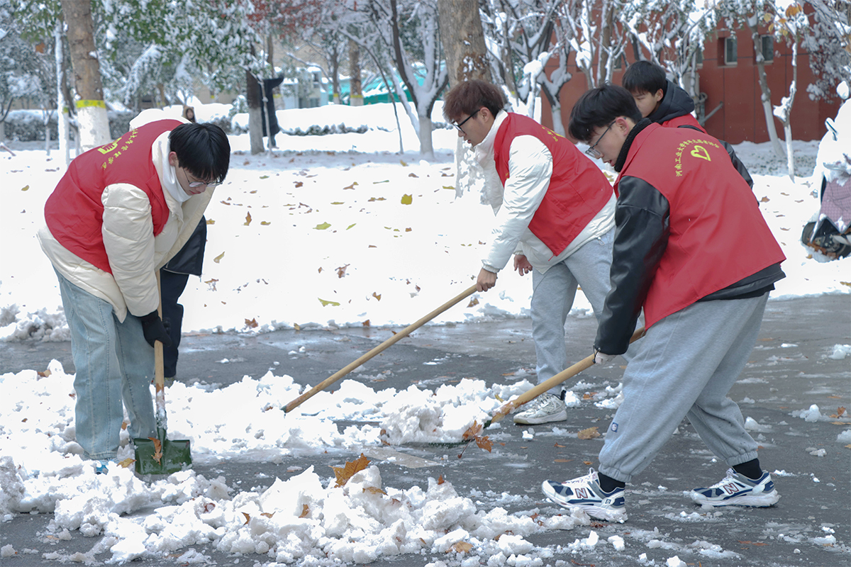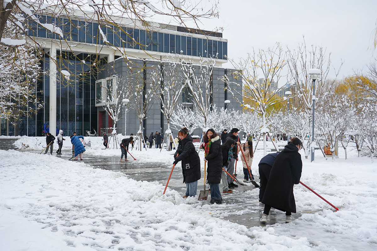 2023年12月11日,冬雪突然來臨,大雪紛飛。同學們堆雪人、打雪仗,沉浸在雪的世界中,但積雪和結冰的道路給大家的出行帶來了不便,為保障廣大師生的出行安全,我校各單位黨員干部和師生員工積極開展清雪除冰工作。