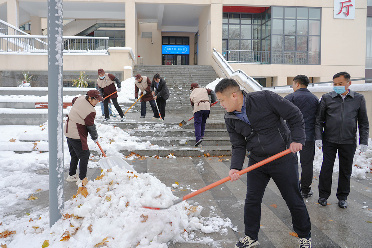 我校黨委書記劉志軍帶領教職員工進行鏟雪工作