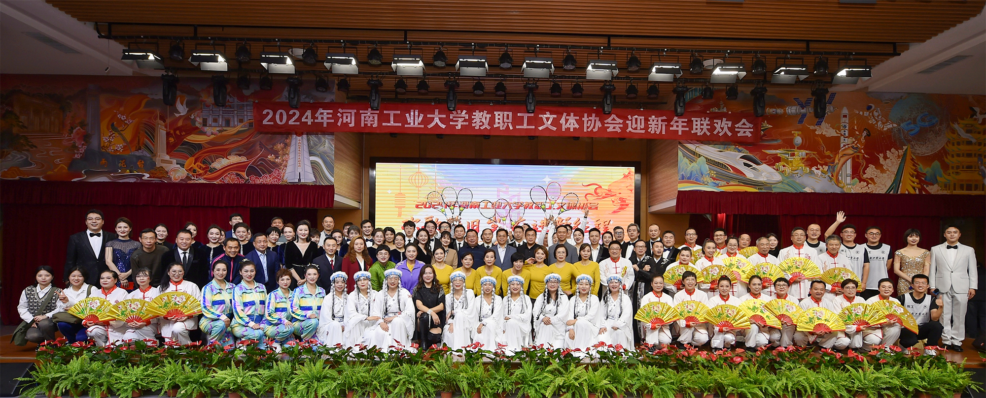 玉兔歡欣辭舊歲,金龍昂首迎新春。12月28日晚,河南工業大學教職工文體協會迎新年聯歡會在學生事務中心25201舉行。學校領導劉志軍、周相寅、牛進平、張玉安與全校13個教職工文體協會近300名會員歡聚一堂,共憶精彩往昔,同賀元旦佳節。