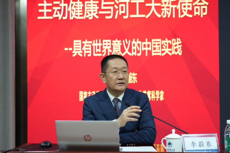 儀式結(jié)束后,李蔚東以《主動(dòng)健康與河工大新使命——具有世界意義的中國(guó)實(shí)踐》為題,為研究院作了成立后的首場(chǎng)學(xué)術(shù)報(bào)告。