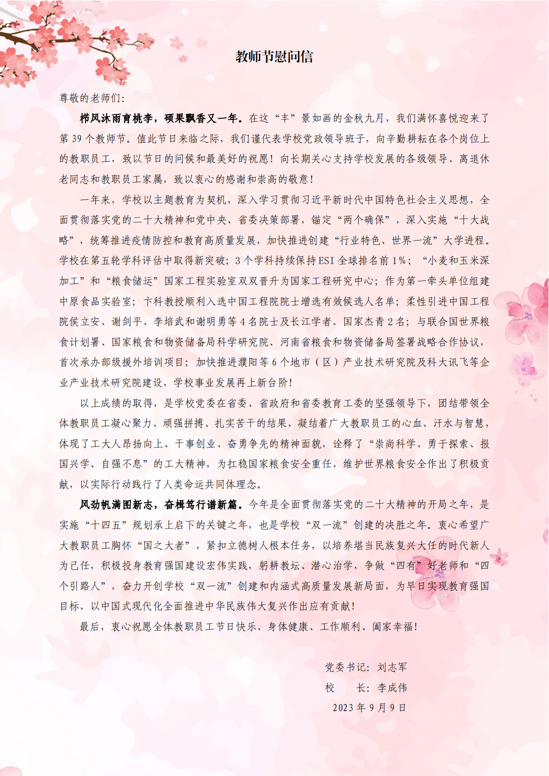教師節慰問信