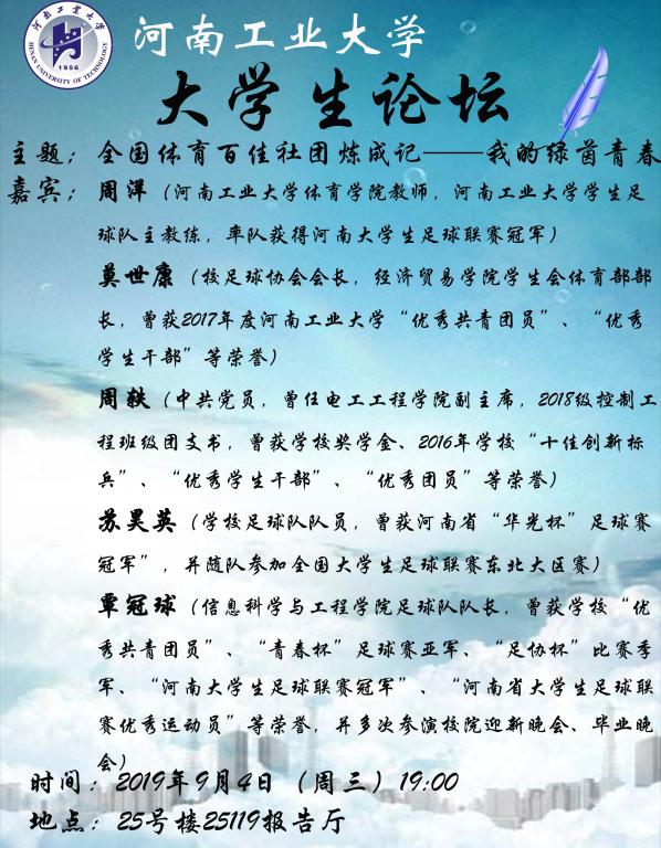 周洋,河南工業大學體育學院教師,河南工業大學學生足球隊主教練,率隊獲得河南大學生足球聯賽冠軍。