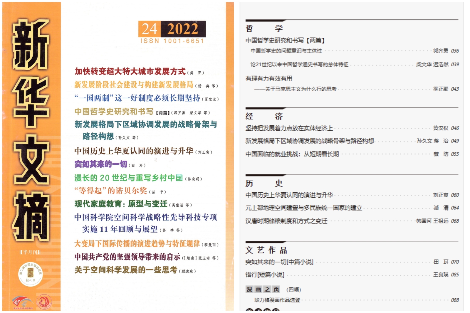 《新華文摘》創刊于1979年,由人民出版社主辦,是我國最具影響的哲學社會科學文摘類雜志。其選登論文被國內各高校和科研院所認定為權威學術期刊,成為高校和科研機構學術評價的重要指標和依據。