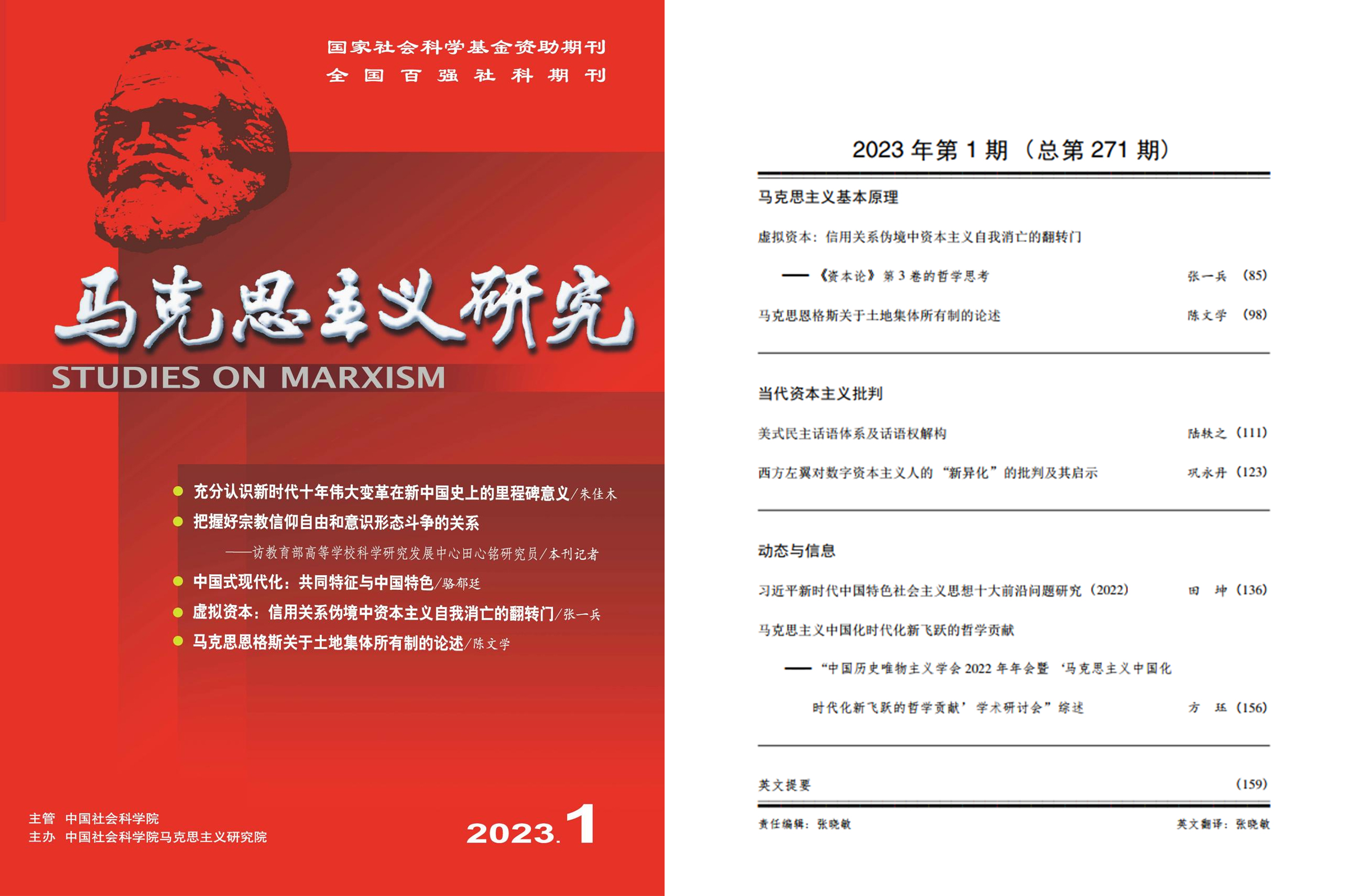 國(guó)內(nèi)權(quán)威A類期刊《馬克思主義研究》刊發(fā)馬院陸軼之副教授文章