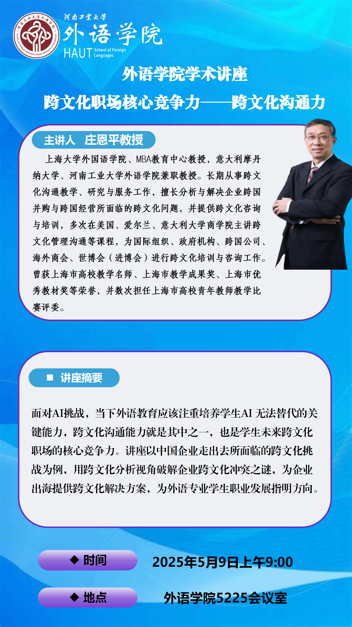 外語學(xué)院學(xué)術(shù)講座:跨文化職場核心競爭力——跨文化溝通力