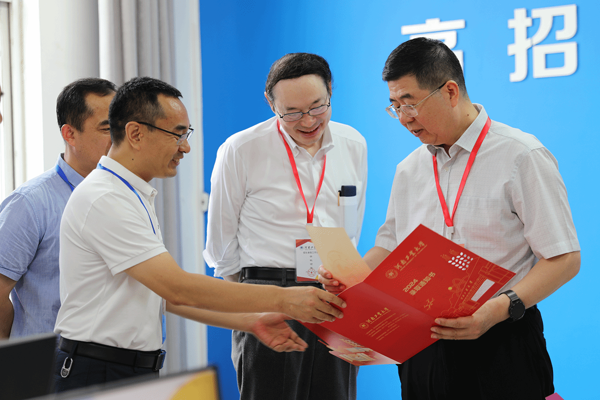 07.232024學校領導檢查指導招生錄取工作看望慰問工作人員7月22日,河南工業(yè)大學黨委書記劉志軍、校長吳智深、副校長李煥鋒在黨委辦公室、校長辦公室主任劉紅軍陪同下蒞臨招生錄取現(xiàn)場,對本科招錄工作進行視察指導,并親切慰問... -