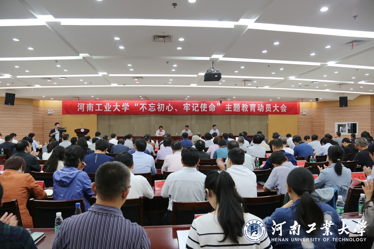 09.122019我校召開“不忘初心、牢記使命”主題教育動員會9月12日上午,我校“不忘初心、牢記使命”主題教育動員會在學術報告中心D205報告廳舉行。省委第十四巡回指導組組長、鄭州輕工業大學原黨委書記石恒真出席會議并講話。校...